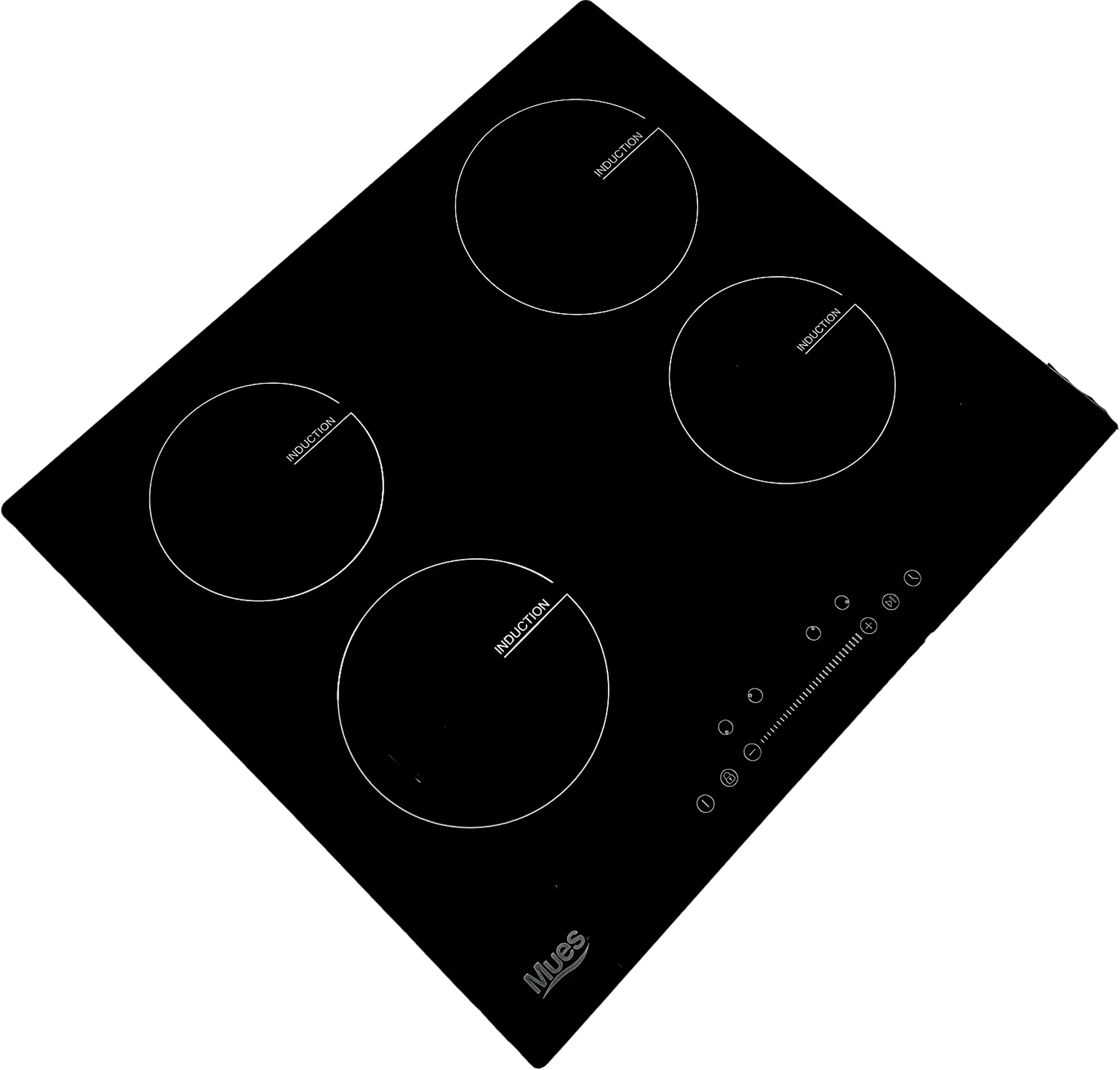 Cubierta de induccion de cuatro puestos material placa de cristal color negro acabado pulido med: 59*52cm 56*49cm