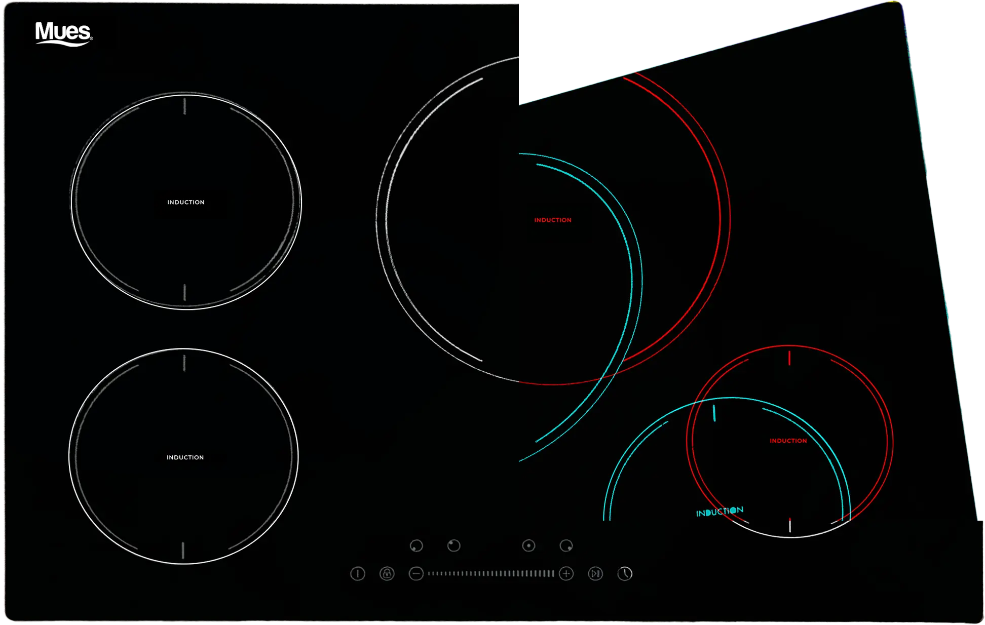 Cubierta de induccion de cuatro puestos material placa de cristal color negro acabado pulido med: 77*52cm 73*49cm